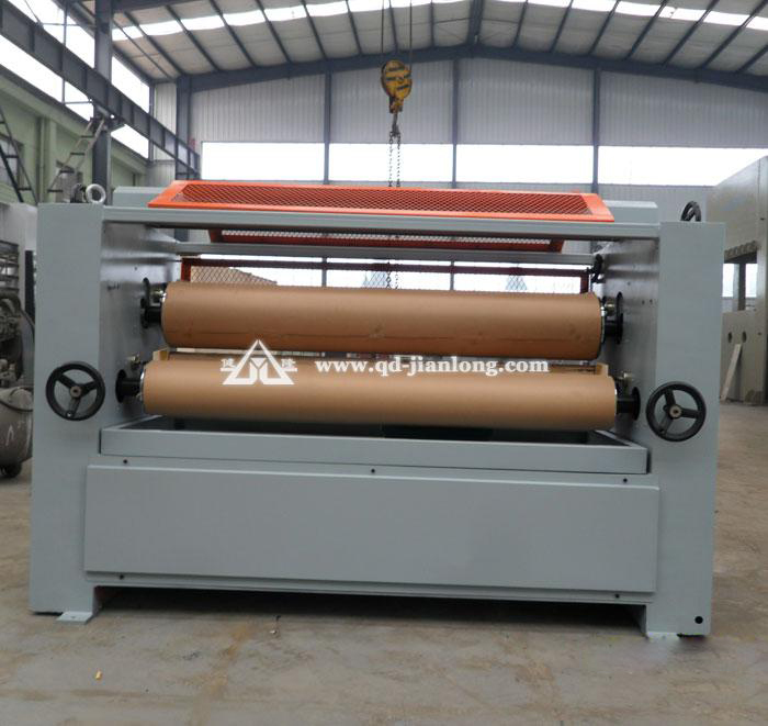 3、胶辊与底辊之间间隙的调整,由调隙手轮操作,使其略小于板厚即可,间隙过小,会产生板头缺胶的现象。如在使用一段时间后,发现左右间隙不相等,则可随时单独操作任一调隙手轮进行调整,待左右间隙一致即可。